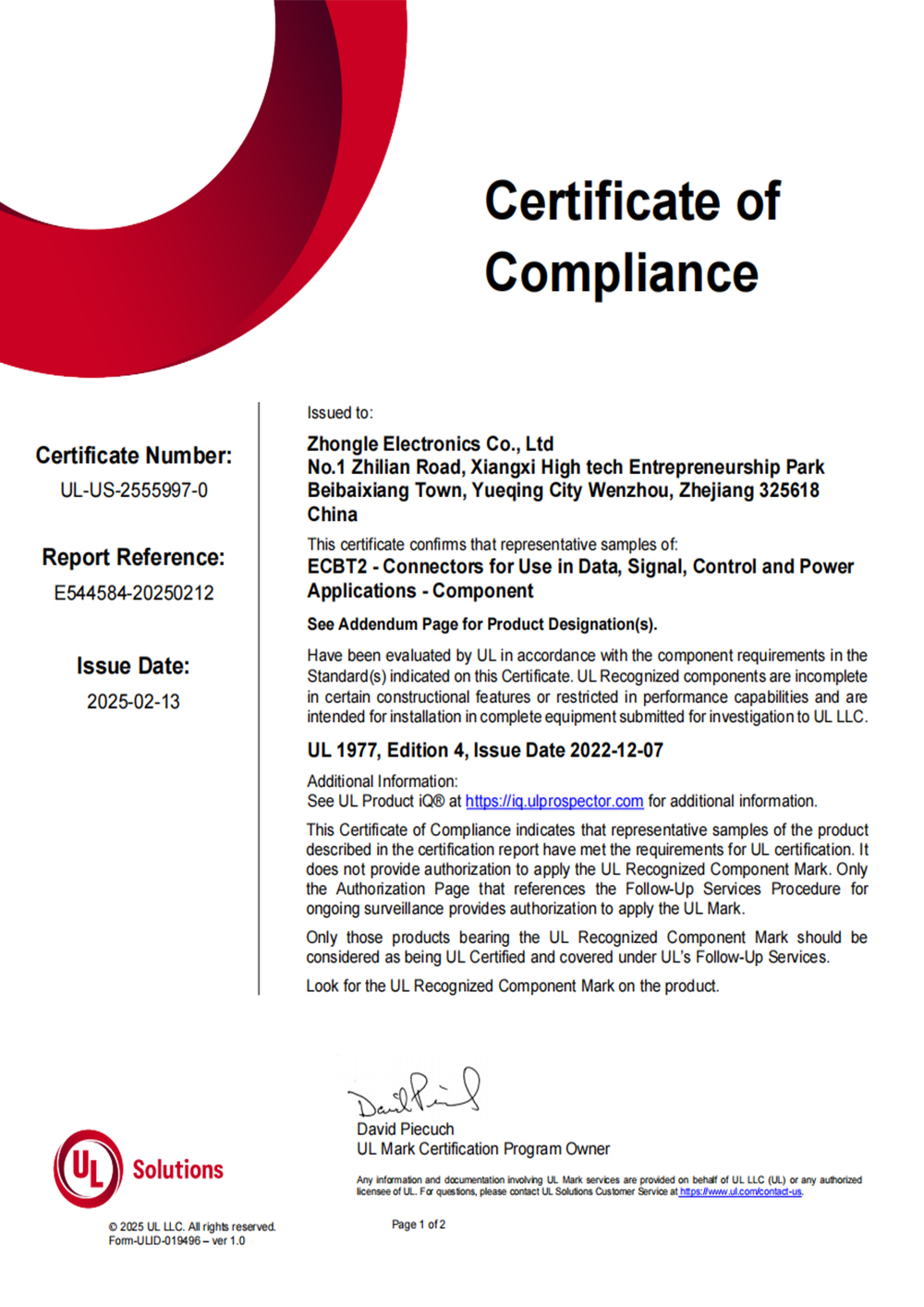 中乐投资创业以来,专业从事制造、销售、设计研发条形连接器及各种电子电器配件,产品广泛应用于智能家居、通讯设备、计算机等各种电器领域。